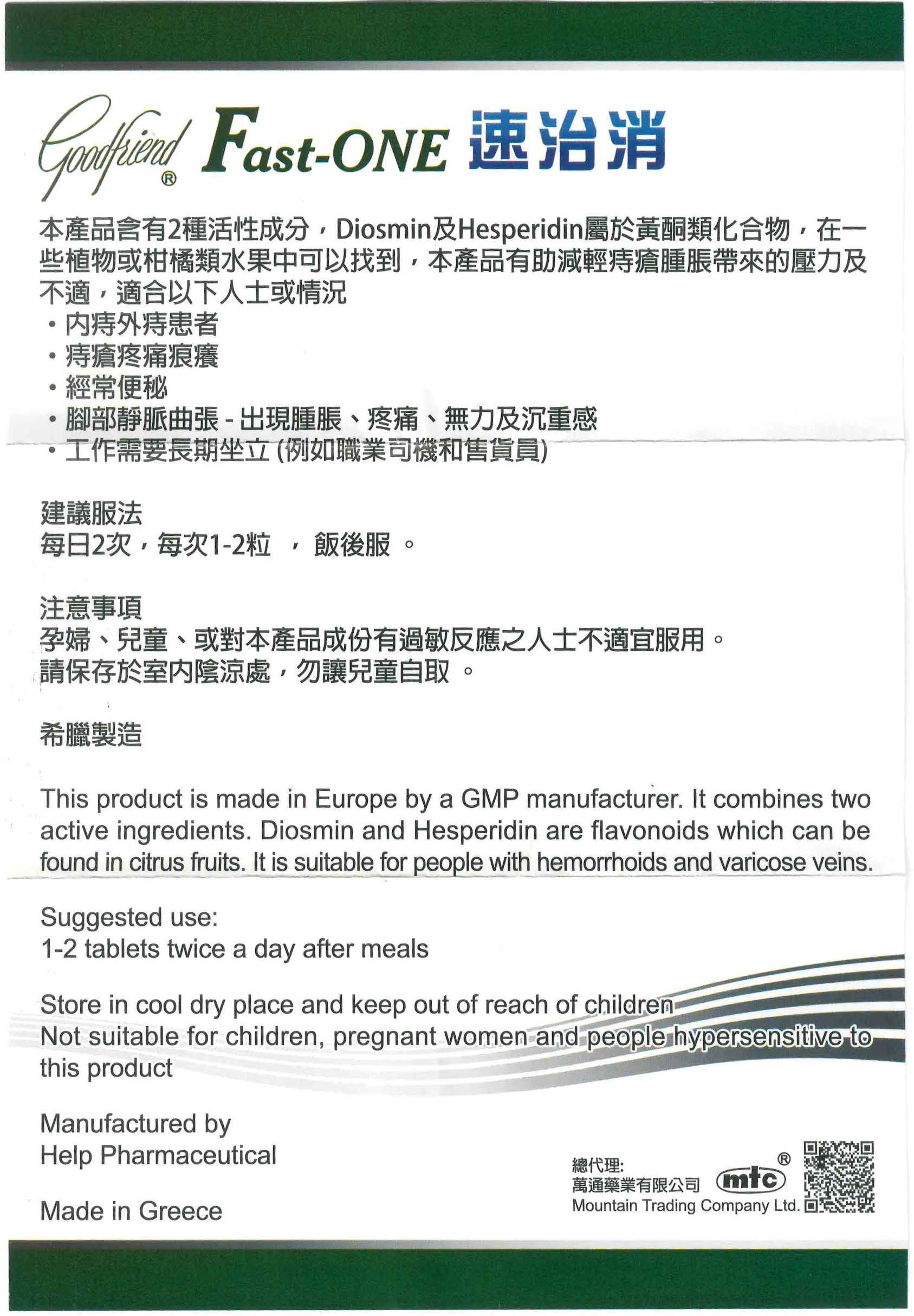 本産品含有2種活性成分,Diosmin及Hesperidin屬於黃酮類化合物,在植物或柑橘類水果中可以找到,本產品有助減輕痔瘡腫脹帶來的壓力及不適。